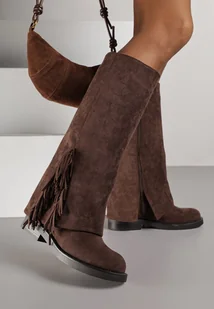 Brązowe Kozaki z Wywiniętą Cholewką i Frędzlami Reisela