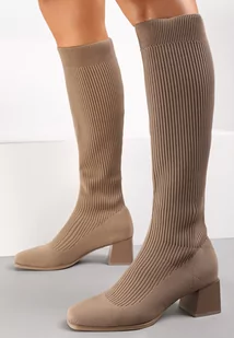 Ciemnobeżowe Kozaki z Elastyczną Cholewką Timerine