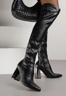 Czarne Dopasowane Kozaki Vices za Kolano na Metalicznym Słupku Todvira