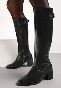 Czarne Kozaki na Słupku z Przeszyciami i Paskiem ze Sprzączką Kirina