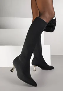 Czarno-Złote Kozaki Vices na Kaczuszce Ozdobione Skarpetową Cholewką Asonelle