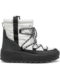 Kozaki zimowe "Milleiny" w kolorze biało-czarnym - zapięcie: sznurowanie - praktyczna szlufka ułatwiająca zakładanie - noski: zaokrąglone - noski i zapiętki: wzmocnione - detale: obszycie ze sztucznego futerka - dookoła gumowanie - podeszwa: