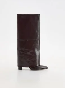 Reserved - Skórzane kozaki z podwójną cholewką - mahoniowy