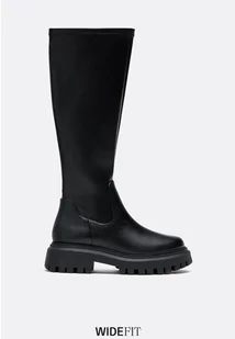 Wysokie płaskie kozaki. Podeszwa typu traktor. Dostępne w kolorze czarnym. Wysokość podeszwy: 5 cm. AIRFIT®. Techniczna, elastyczna wkładka z pianki lateksowej, zaprojektowana w celu zapewnienia większego komfortu.