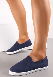Granatowe Materiałowe Tenisówki na Elastycznej Podeszwie Aishani