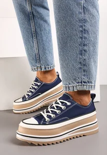 Granatowe Sznurowane Trampki na Grubej Podeszwie Moonnella