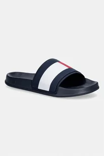 Klapki męskie Tommy Hilfiger to wsuwane obuwie, które sprzyja wygodzie podczas letnich dni. Ten model, utrzymany w granatowej kolorystyce, doskonale sprawdzi się jako element swobodnych, plażowych stylizacji. Ich konstrukcja pozwala na szybkie zakładanie i zdejmowanie, co jest praktyczne w wielu sytuacjach.