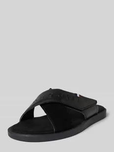 Klapki skórzane z napisem z logo model ‘Derek’