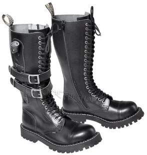 oryginalne buty firmy STEEL prawy but opinany paskami zapinanymi na klamry dodatkowo umieszczony został na nim pokrowiec na nóż liczba dziurek: 20 szt. po bo...