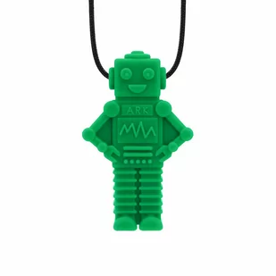 ARK's RoboChew™ Sensory Chew Necklace - Ciemno Zielony - Twardy Gryzak w kształcie Robota w formie naszyjnika. Bardzo wygodna i bezpieczna alternatywa w stosunku do gryzienia kredek, pisaków czy własnych palców. Szczególnie polecane dla dzieci tzw. "przeżuwaczy", którym pozwala odreagować różnego rodzaju stresy, dając możliwość skupienia np. na pracy domowej lub innych zajęciach wymagających zwiększonej uwagi.