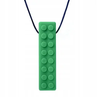 Brick Stick , Naszyjnik Klocek - Ciemno Zielony Twardy ARK Brick Stick - gryzak w kształcie klocka, w formie naszyjnika. Bardzo wygodna i bezpieczna alternatywa w stosunku do gryzienia kredek, pisaków czy własnych palców. Szczególnie polecane dla dzieci tzw "przeżuwaczy", którym pozwala odreagować różnego rodzaju stresy dając możliwość skupienia np na pracy domowej lub innych zajęciach wymagających zwiększonej uwagi. Wykonany z wysokiej jakości elastomeru klasy medycznej. Jak wszystkie inne produkty ARK, gryzak produkowany jest w Południowej Karolinie w USA i jest dostępny w różnych kolorach o przypisanej im twardości: