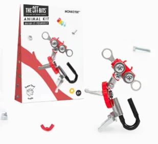 Małpka Monkeybit. Zabawka. Najmniejszy dostępny zestaw, z którego zbudujesz małpę MonkeyBit Zestawy można dowolnie łączyć ze sobą Można je też łatwo rozszerzać o dodatkowe części z dowolnej domowej skrzynki narzędziowej Zestaw postaci zawiera broszurę ze szczegółowymi instrukcjami, narzędzie. . .