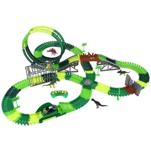 - elementy toru - samochód - pilot - pętla - klatka - otwierana ściana - skrzyżowanie - most - 4 drzewka - 4 dinozaury Sugerowany minimalny wiek(według informacji podanej przez producenta na opakowaniu):
