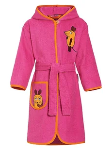 Szlafrok w kolorze różowym - czysta bawełna - przyjazny dla skóry i łatwy w pielęgnacji materiał - właściwości: chłonny materiał frotte - kaptur: tak - zapięcie: guzik - zdejmowany pasek: tkanina - kieszenie: naszyte