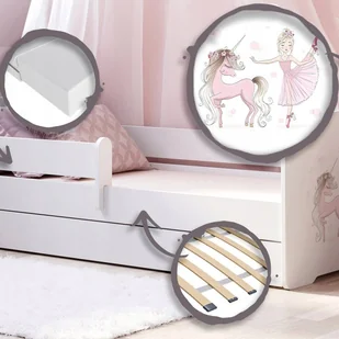 Bezpieczeństwo i maksymalny komfort dla Twojego dziecka Łóżko dziecięce z barierką i szufladą to idealny wybór dla rodziców poszukujących mebla łączącego bezpieczeństwo, funkcjonalność i nowoczesny design. Solidna konstrukcja i wysokiej jakości materiały gwarantują wygodny sen oraz trwałość na lata. Dzięki uniwersalnemu stylowi łóżko pasuje do każdego pokoju dziecięcego – niezależnie od wieku czy płci dziecka. Najważniejsze zalety ✔ Zaokrąglone krawędzie dla większego bezpieczeństwa Wszystkie krawędzie są starannie zaokrąglone i zabezpieczone obrzeżami z PVC, co zmniejsza ryzyko urazów podczas zabawy i snu. ✔ Zdejmowana barierka ochronna W zestawie znajduje się ruchoma barierka, którą można zamontować po prawej lub lewej stronie – dodatkowa ochrona dla spokojnego snu.