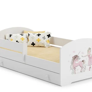 Białe Łóżko Dziecięce w Stylu Skandynawskim z Motywem Dziewczynki i Jednorożca 160x80 cm z Szufladą – Zawiera Materac Piankowy, Stelaż