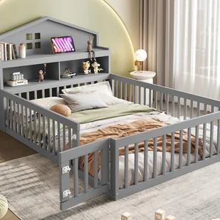 Rama łóżka wykonana jest z litego drewna sosnowego, a konstrukcja z pełnym panelem jest bardziej skuteczna w zapewnianiu bezpieczeństwa dzieciom. Małe drzwiczki, które można otwierać i zamykać, sprawiają, że łóżko jest bardziej interesujące i tworzy bezpieczne i wygodne miejsce do spania.