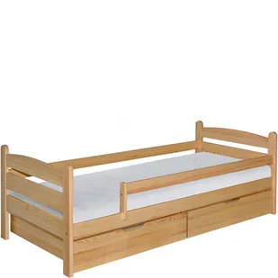 Łóżko 90 x 200 ze stelażem MAURICIUSStylowe łóżko Mauricius świetnie wpisze się w aranżację pokoju dziecięco-młodzieżowego. Umieszczone po bokach elementy ochronne zapewniają bezpieczeństwo użytkowania. Na uwagę zasługuje również wysoka jakość materiału z jakiego mebel został wykonany, czyli bardzo wytrzymałe drewno sosnowe. Ponadto łóżko posiada pojemną szufladę, która może być wykorzystana jako pojemnik na pościel lub schowek. Poza oczywistą funkcją praktyczną łóżko posiada również spore walory estetyczne.