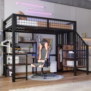 Konstrukcja łóżka loftowego sprytnie łączy przestrzeń do spania i pracy, z biurkiem na dolnym poziomie zapewniającym przestronne miejsce do pracy i górnym poziomem oferującym wygodną przestrzeń do spania, która jest zarówno funkcjonalna, jak i praktyczna.
