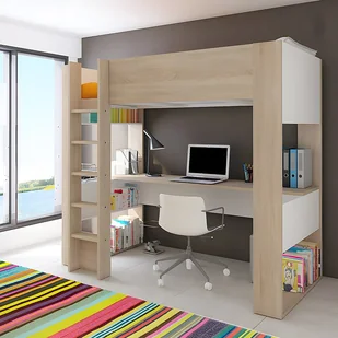 Zintegrowane z dziećmi półki do przechowywania przedmiotów dekoracyjnych, książek i zabawek pod ręką! Dwukolorowa, ale stonowana struktura (naturalny kontur i białe tło) wprowadzi wyrafinowanie do pokoju Twoich dzieci lub nastolatków, dziewcząt lub chłopców!