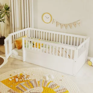 Unikalny design z drzwiczkami – To dziecięce łóżko z pojemnikiem jest wyposażone w barierkę bezpieczeństwa i małe drzwiczki, które otwierają się i zamykają, zapewniając bardziej zabawną, wygodną i bezpieczną przestrzeń do spania.