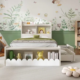 Stylowy i przyjazny dzieciom designTo nie tylko łóżko, ale prawdziwy centralny punkt pokoju.falista dekoracjaprzynosi witalność i radość, a jednocześnie połączeniebiały i dąbtworzy nowoczesny i ponadczasowy efekt, idealny do każdego wystroju.