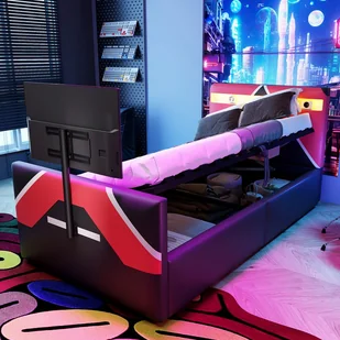 2. KOLOROWE OŚWIETLENIE LED – To innowacyjne łóżko wyposażone jest w zintegrowany pasek świetlny LED z funkcją zmiany koloru. Regulowane tryby oświetlenia dopasowują się do nastroju, stylu gry lub komfortu snu, poprawiając nastrój w pokoju.