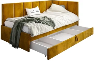 Łóżko młodzieżowe AURA 2 120x200 curry z tapicerowanym panelem L i szufladą MKPOL