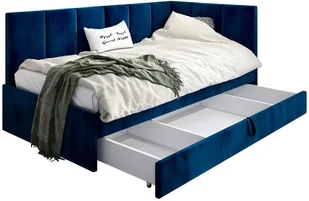 Łóżko młodzieżowe AURA 2 90x200 granatowe z tapicerowanym panelem L i szufladą