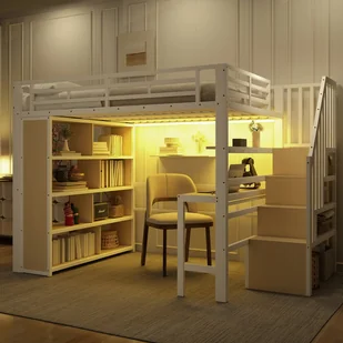 Wyjątkowe materiały: Subtelne połączenie żelaznej ramy i płyty MDF zapewnia wyjątkową wytrzymałość, a płyta MDF oferuje gładką i przyjazną dla środowiska powierzchnię. Razem tworzą łóżko piętrowe, które łączy estetykę i funkcjonalność.