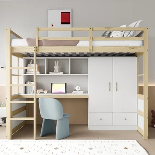 Kompaktowa konstrukcja – To łóżko piętrowe idealnie łączy w sobie funkcje spania, pracy i przechowywania, zapewniając optymalną przestrzeń. Dostępne w klasycznej bieli i naturalnym drewnie, idealnie wpasowuje się w różnorodne style sypialni.