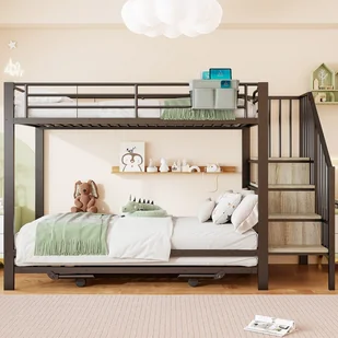 To łóżko piętrowe zostało zaprojektowane z myślą o większych rodzinach, optymalizuje przestrzeń i zapewnia każdemu dziecku własną prywatną strefę.