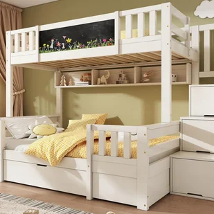 To łóżko piętrowe sprytnie integruje tablicę ścienną w szczeblach górnego łóżka, umożliwiając dzieciom rozwijanie wyobraźni.
