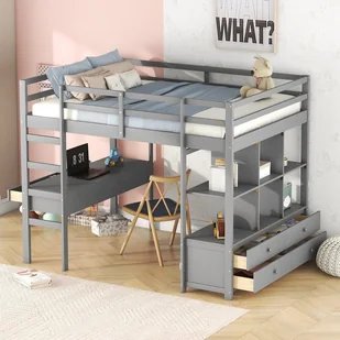 Unikalny design: Konstrukcja antresoli z biurkiem, półką i 6 dużymi szufladami zapewnia wygodną przestrzeń do nauki lub pracy.