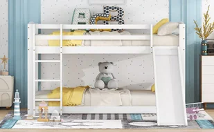 Oszczędność miejsca】 To łóżko piętrowe nadaje się do domów z niskim sufitem. Wykorzystując przestrzeń pionową, to łóżko piętrowe oszczędza dużo miejsca i pozwala na umieszczenie innych mebli w sypialni dziecka. 【Łóżko piętrowe ze zjeżdżalnią】 To łóżko piętrowe dla dzieci jest wyposażone w drabinkę i zjeżdżalnię, dzięki czemu dziecko może wchodzić i schodzić z górnego łóżka piętrowego. Wyposażone w niską zjeżdżalnię, na której dziecko może się bawić, to drewniane łóżko piętrowe rozjaśni codzienne życie dziecka. Zjeżdżalnia i stołek są wymienne i można je umieścić po lewej lub prawej stronie. 【Drewniana rama łóżka】 Łóżko piętrowe posiada ramę z litego drewna sosnowego. Górny poziom ma 15 listew i jest bardzo korzystny dla dzieci i nastolatków i może utrzymać do 120 kg. Neutralny kolor jest odpowiedni zarówno dla chłopców, jak i dziewcząt i może być bezpiecznie używany przez długi czas. 【Dla bezpieczeństwa Twojego dziecka】 Schody z poręczami wokół górnego łóżka zwiększają stabilność łóżka i zapewniają bezpieczeństwo dziecka. Ponadto solidne sosnowe nogi zapewniają dodatkową wytrzymałość i trwałość. 【Łatwy montaż】 Łóżko piętrowe zawiera szczegółowe instrukcje i ponumerowane części, aby skrócić czas i trudności instalacji.