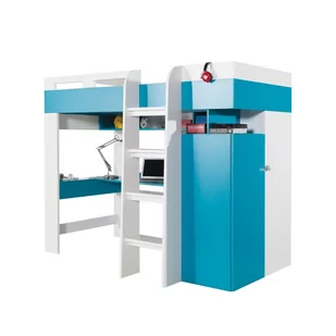 Łóżko piętrowe z biurkiem i szafą MO20 MOBISzukasz ciekawych i nieszablonowych rozwiązań do pokoju swojej pociechy? Jesteś na dobrej drodze! Łóżko z kolekcji Mobi jest idealną pod każdym względem propozycją dla młodego człowieka, zwłaszcza jeśli metraż jego pokoju jest ograniczony. Zestaw wyposażono w wygodną drabinę oraz barierkę okalającą łóżko, dzięki której dziecko nie spadnie. Ponadto pod łóżkiem znajduje się blat doskonale sprawdzający się w roli biurka. Zestaw zawiera szereg wnęk, półek oraz pojemną szafę, dzięki czemu w pomieszczeniu zapanuje ład i porządek. Proste, geometryczne kształty zestawiono z najmodniejszą kolorystyką.