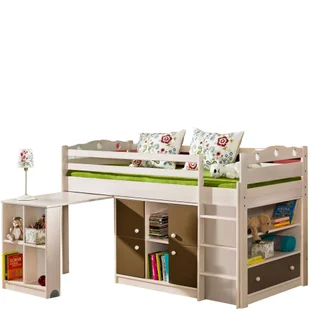 Dzięki takiemu rozwiązaniu oszczędzasz przestrzeń, a przy tym zyskujesz miejsce na wiele przedmiotów, co z pewnością pomoże młodemu człowiekowi w zachowaniu porządku. Ważny jest również fakt, iż meble Kamil zostały wykonane z wysokiej jakości materiałów, dzięki czemu są bezpieczne i posłużą użytkownikowi przez wiele lat. W skład zestawu wchodzą następujące elementy: łóżko piętrowe 90 x 200 z wysuwanym biurkiem KA-1 komoda KA-2, czterodrzwiowa z regałem komoda KA-3 z szufladą i regałemŁóżko w komplecie ze stelażemŁóżko bez materaca. Materace dostępne w opcji dodatkowej.