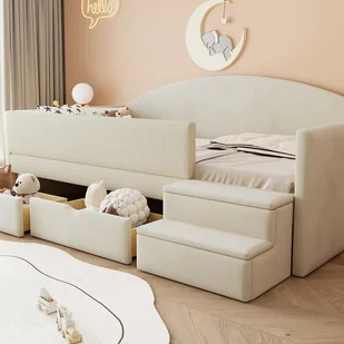 Podwójne antypoślizgowe stopnie ułatwiają wchodzenie i schodzenie z łóżka, skutecznie zapobiegają wspinaniu się i upadkom, pozwalając najmłodszym na samodzielność.