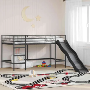 vidaXL Łóżko piętrowe dla dzieci z zjeżdżalnią Czarny i antracyt