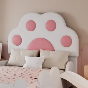 Dzięki zagłówkowi w kształcie łapy kota z kreskówki, to wyściełane pojedyncze łóżko wnosi zabawny i przytulny akcent do pokoju dziecka.