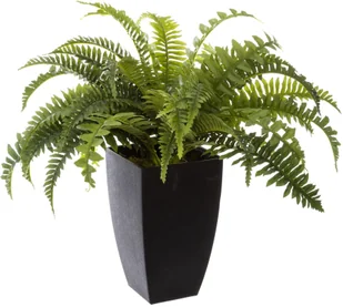 Sztuczna roślina w czarnej donicy, paproć bostońska to imitacja paproci wykonana z tworzywa sztucznego, umieszczona w cementowej osłonce. Wymiary produktu: wysokość 55 cm x średnica 65 cm. Sztuczne kwiaty sprawdzają się zarówno w pomieszczeniach, jak i na zewnątrz na tarasie czy balkonie.