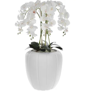 Biały sztuczny bukiet kaskadowy storczyków w białej doniczce, ok. 90 cm wysokości, gumowane kwiaty, 5 pędów dekoracja do domu i biura Zadbaj aby Twoja przest...