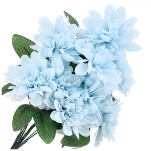 Bukiet sztuczny dalii. 1 łodyga-9 rozgałęzień. Każda gałązka jest zakończona główką kwiatową w kolorze błękitnym. Posiada listki przesuwane góra-dół. Średnic...