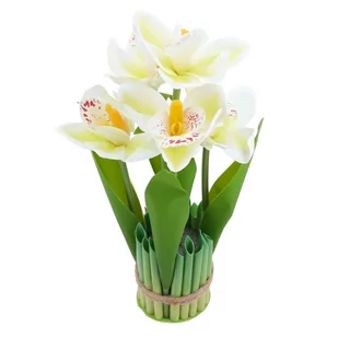 Bukiet sztuczny żonkili w kolorze bieli. 5 łodyg, które wyglądają jakby wyrastały z ziemi. Zakończone są główkami kwiatowymi. Każda znajduje się na innej wys...