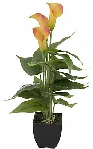 EUROPALMS Calla mini, sztuczna roślina, żółto-pomarańczowa, 43 cmDzięki swojej stylowej elegancji kalia mini od Europalms jest idealną ozdobą stołów i lad w biurach i salonach, a także w restauracjach i hotelach. Kwiaty w kształcie lejka w kolorze żółto-pomarańczowym kontrastują z realistycznymi zielonymi liśćmi i przyciągają wzrok w każdym pomieszczeniu. Całkowita wysokość wynosi około 43 cm, a sztuczna roślina jest dostarczana w prostej dekoracyjnej doniczce ozdobionej sztucznym mchem. Wystarczy ustawić i cieszyć się. Cechy produktu: