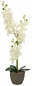 Gotowy do umieszczenia Kolor kwiatów: Kremowy Wysokość: 65 cm Sztuczna orchidea jest nie do odróżnienia od żywej rośliny. Wysokość ok. 80 cm, 3 oddzielne łodygi pokryte są tkaninowymi kwiatami w kolorze kremowym, które mają woskową powierzchnię, dzięki czemu w dotyku imitują prawdziwy kwiat.