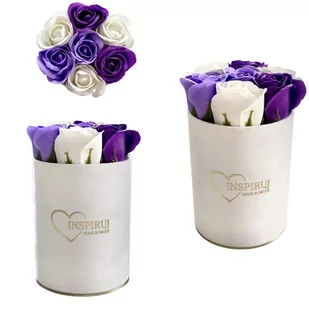FLOWERBOX Z RÓŻAMI MYDLANYMI KWIATY MYDLANE W PUDEŁKU PREZENT BUKIET KWIATÓW NA WALENTYNKI DLA NIEJ BIAŁY WELUROWY FLOWERBOX ZŁOTE DNO FIOLETOWY MIX RÓŻ MYDLANYCH FLOWERBOX PREMIUM KWIATY MYDLANE W PUDEŁKU PREZENT BOX Z KWIATAMI RÓŻE MYDLANE PREZENT PUDEŁKO Z RÓŻAMI Prezent w postaci flower box'u z kompozycją z mydlanych kwiatów idealnie sprawdzi się na Walentynki, Dzień Kobiet, Dzień Mamy, Dzień Babci, Dzień Dziadka, Dzień Taty, prezent pod choinkę, upominek, jako alternatywa żywych kwiatów, prezent na wesele, ślub, prezent dla pracowników, jako podziękowanie dla gości, prezent na dzień nauczyciela, prezent na urodziny, prezent dla dziewczyny czy ukochanej. Będzie to świetny pomysł zamiast bukietu oraz nie zwiędnie tak jak żywe kwiaty. Kompozycja z kwiatów i róż mydlanych jest alternatywą dla wiecznych róż. Wieczne róże jako mydlane kwiaty nadadzą się do kąpieli, jako dekoracja czy prezenty dla pracowników. Super się sprawdzi jako dodatek do prezentu.