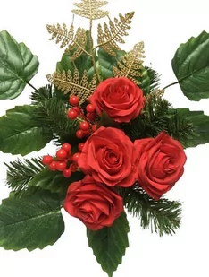 SZTUCZNY STROIK, GOTOWA wiązanka z kwiatami - CZERWONA SZTUCZNA RÓŻA z dodatkami - WKŁAD DO FLAKONU ✅ PODKŁAD SZTUCZNY - W DONICY GOTOWY STROIK na cmentarz -...