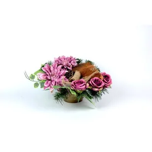 Stroik dekorowany w misie z 5 chryzantemami 23 x 36 cm różowy