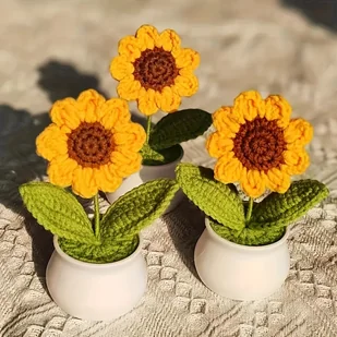 TEMU Zestaw 3 dzierganych słoików z słońcem z polaru, idealne do dekoracji biura lub biurka w domu, doskonałe prezent na urodziny lub Dzień